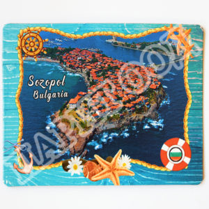 Ръчно изработен релефен магнит във формата на мидена черупка, инкрустиран със стилни мъниста, истински мидени черупки, декоративни фигурки и тематична снимка, запечатани с прозрачна епоксидна смола.Артикулът е уникален – налична е 1 бр.