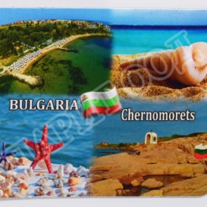 Ръчно изработен релефен магнит във формата на правоъгълна плочка, инкрустиран със стилни мъниста, истински мидени черупки, декоративни фигурки и тематична снимка, запечатани с прозрачен слой епоксидна смола.Артикулът е уникален – налична е 1 бр.