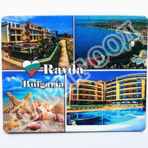 Ръчно изработен релефен магнит във формата на правоъгълна плочка, инкрустиран със стилни мъниста, истински мидени черупки, декоративни фигурки и тематична снимка, запечатани с прозрачен слой епоксидна смола.Артикулът е уникален – налична е 1 бр.