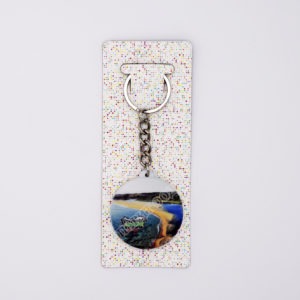 Релефен метален ключодържател с вграден миниатюрен 3D декор – истински миди, мъниста, фигурки и тематична снимка.Артикулът е уникален – налична е 1 бр.