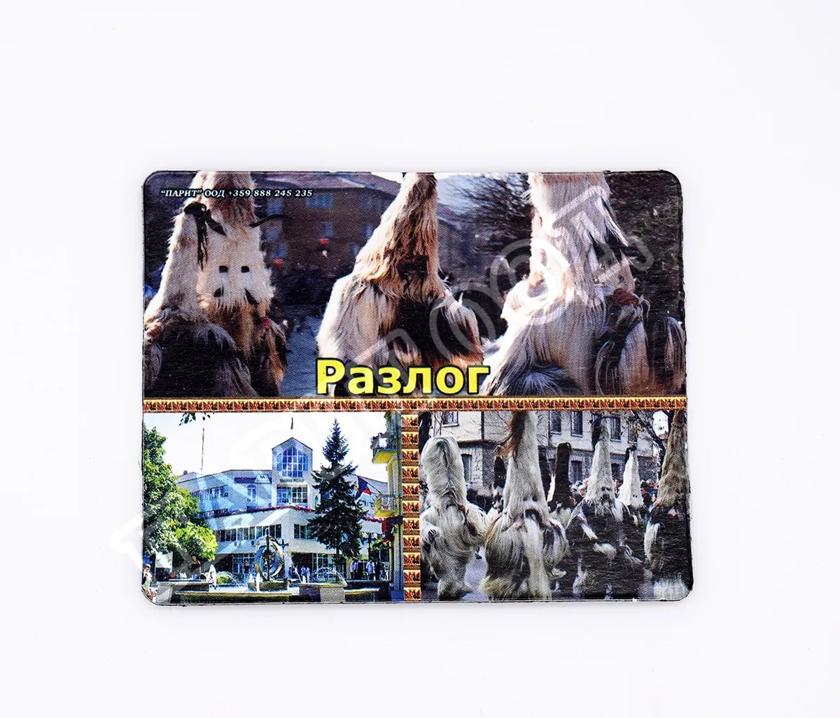 Сувенирен магнит със снимка от Разлог. Предлага се опакован в щендерен целофан.
