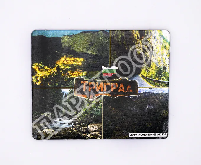 Сувенирен магнит със снимки от Триград. Предлага се опакован в щендерен целофан.