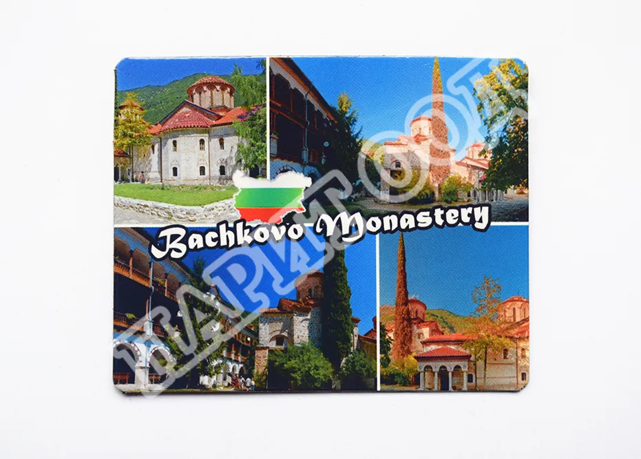 Сувенирен магнит със снимки от Бачковски манастир. Предлага се опакован в щендерен целофан.