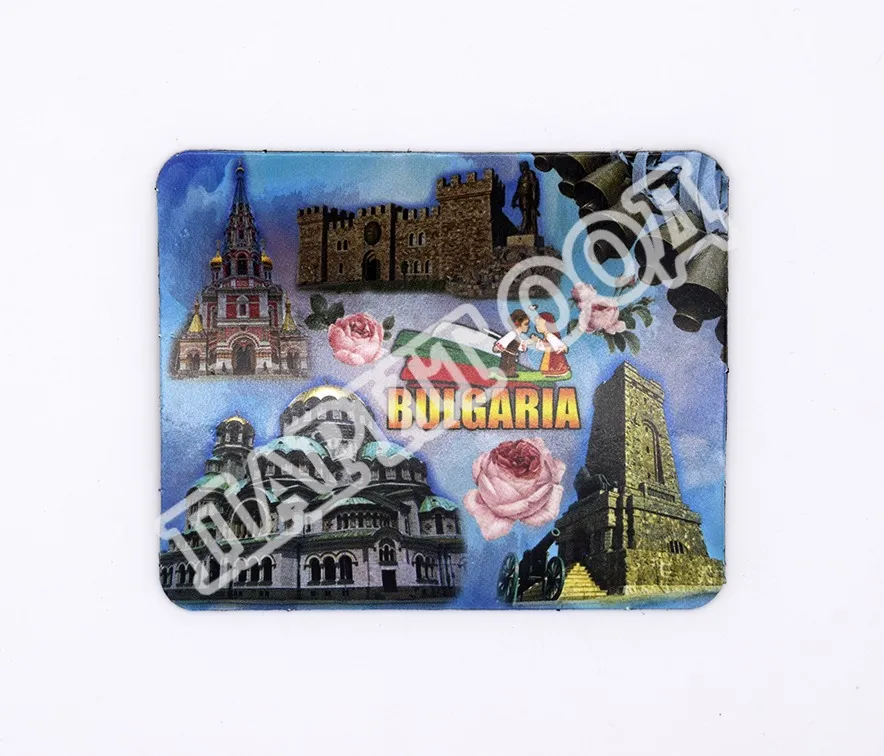 Сувенирен магнит със снимки от България. Предлага се опакован в щендерен целофан.