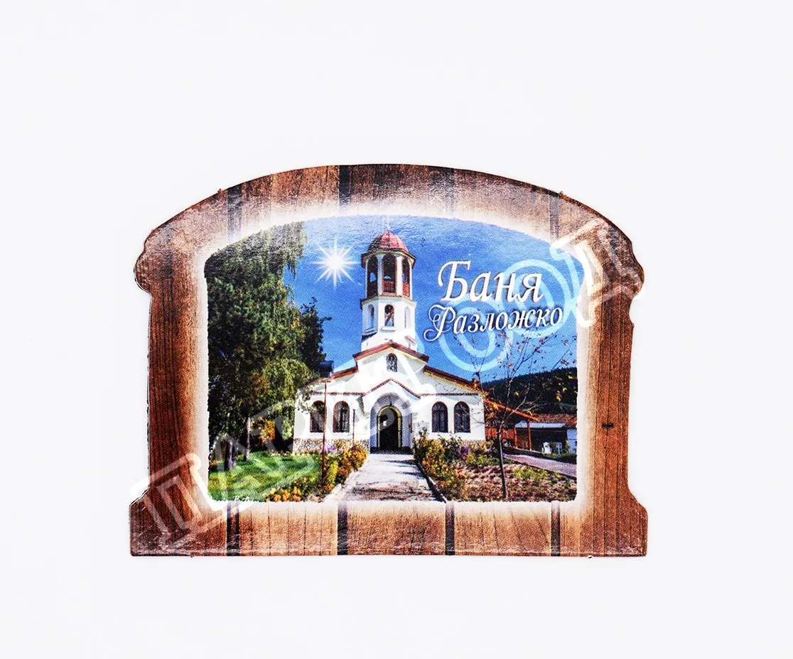Сувенирен магнит със снимка от с. Баня, Разлог. Предлага се опакован в щендерен целофан.