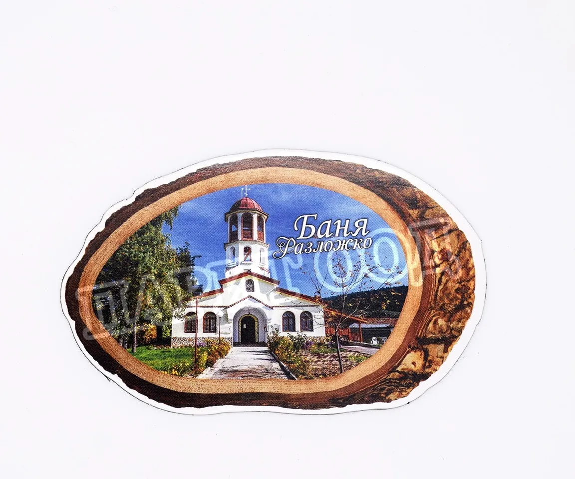 Сувенирен магнит със снимка от с. Баня, Разлог. Предлага се опакован в щендерен целофан.
