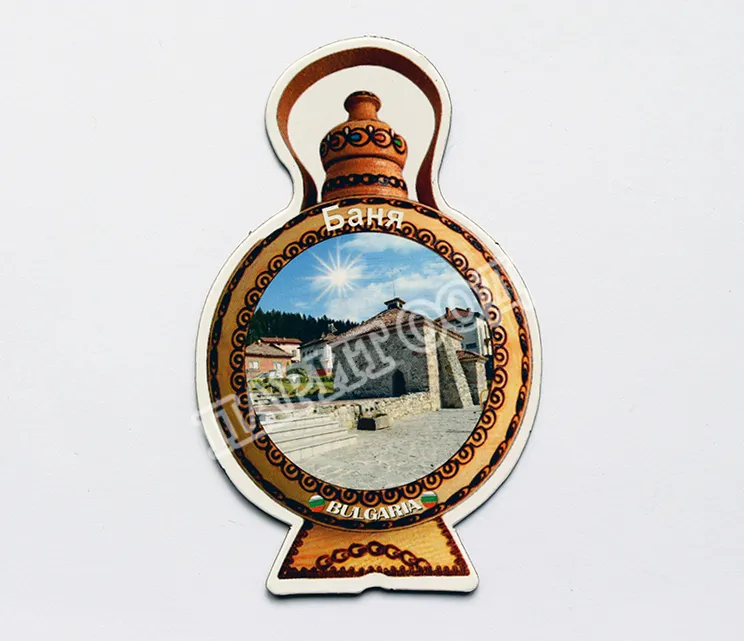 Сувенирен магнит със снимка от с. Баня, Разлог. Предлага се опакован в щендерен целофан.