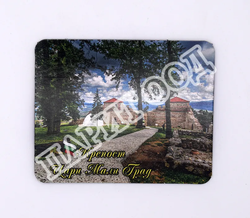 Сувенирен магнит със снимка от крепост Цари Мали град, с. Белчин. Предлага се опакован в щендерен целофан.