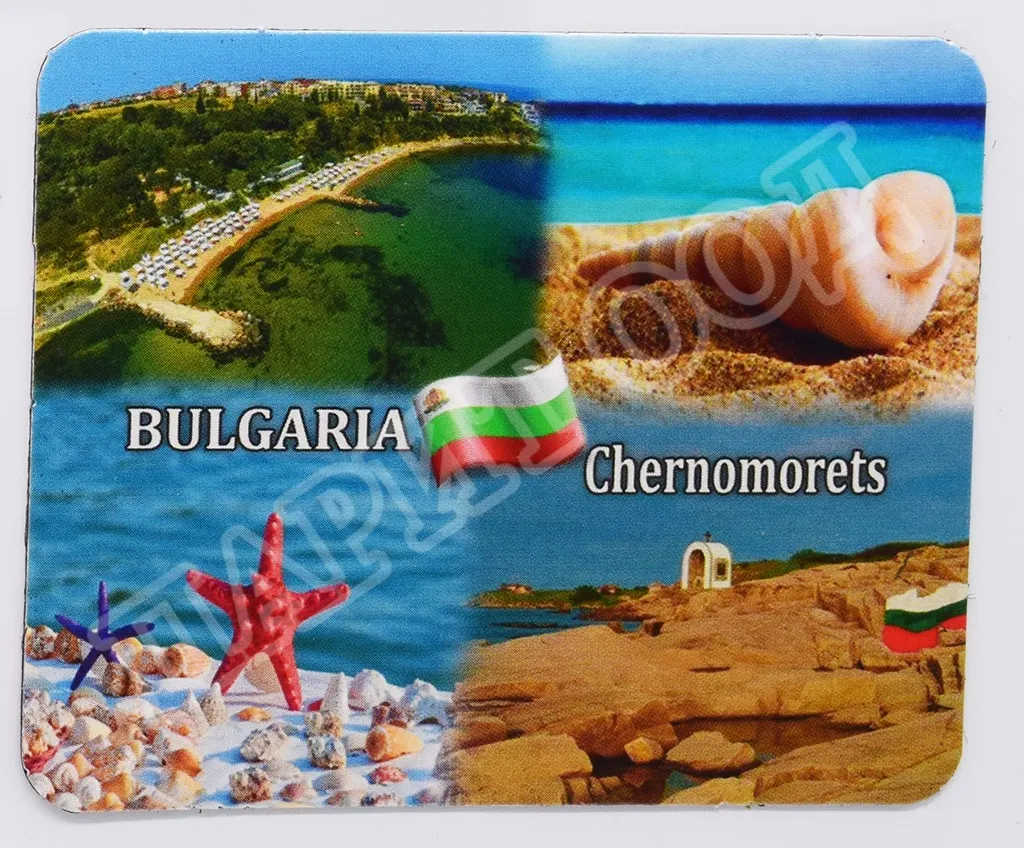 Сувенирен магнит със снимки от Черноморец. Предлага се опакован в щендерен целофан.