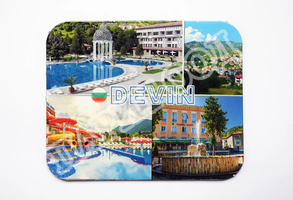 Сувенирен магнит със снимки от Девин. Предлага се опакован в щендерен целофан.