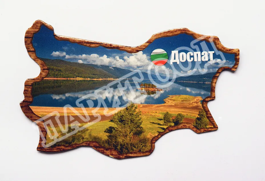 Сувенирен магнит със снимки от Доспат. Предлага се опакован в щендерен целофан.