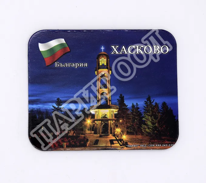 Сувенирен магнит със снимка от Хасково. Предлага се опакован в щендерен целофан.