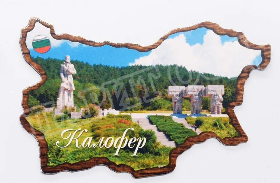 Сувенирен магнит със снимка от Калофер. Предлага се опакован в щендерен целофан.