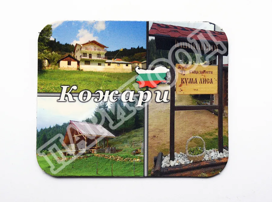 Сувенирен магнит със снимки от с.Кожари. Предлага се опакован в щендерен целофан.