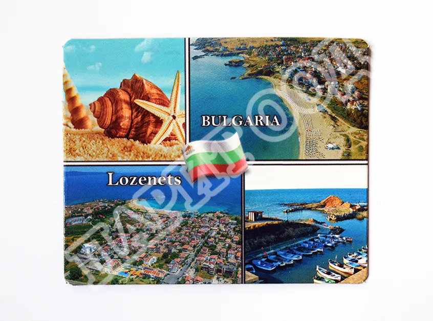 Сувенирен магнит със снимки от Лозенец. Предлага се опакован в щендерен целофан.