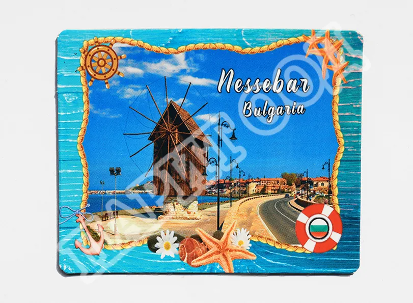 Сувенирен магнит със снимка от Несебър. Предлага се опакован в щендерен целофан.