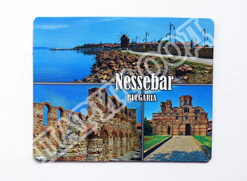 Сувенирен магнит със снимки от Несебър. Предлага се опакован в щендерен целофан.