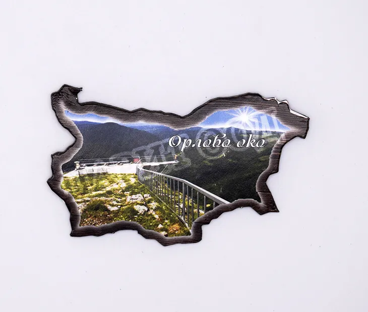 Сувенирен магнит със снимка от панорамна площадка ,,Орлово око”, с. Ягодина. Предлага се опакован в щендерен целофан.