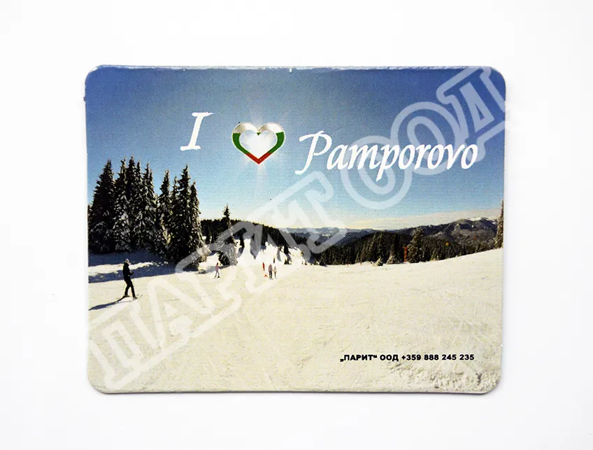 Сувенирен магнит със снимка от Пампорово. Предлага се опакован в щендерен целофан.