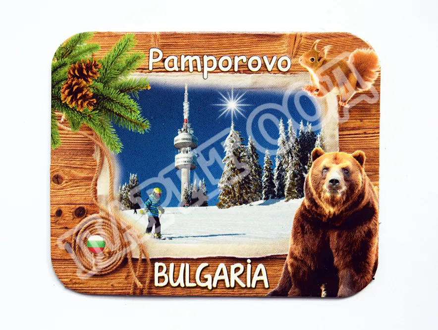 Сувенирен магнит със снимка от Пампорово. Предлага се опакован в щендерен целофан.