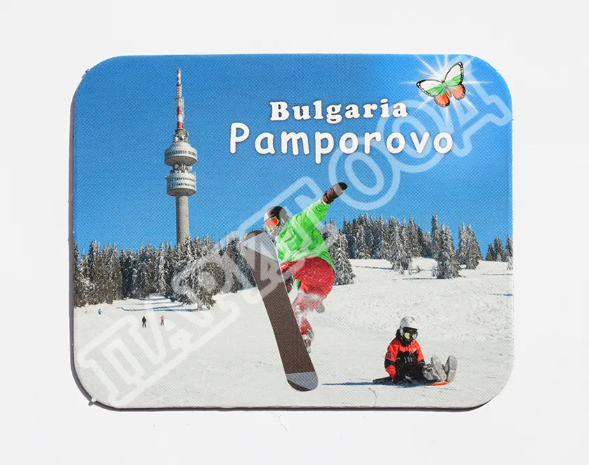 Сувенирен магнит със снимка от Пампорово. Предлага се опакован в щендерен целофан.