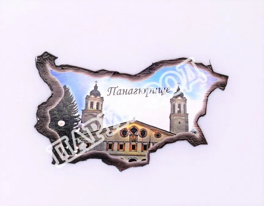 Сувенирен магнит със снимка от Панагюрище. Предлага се опакован в щендерен целофан.