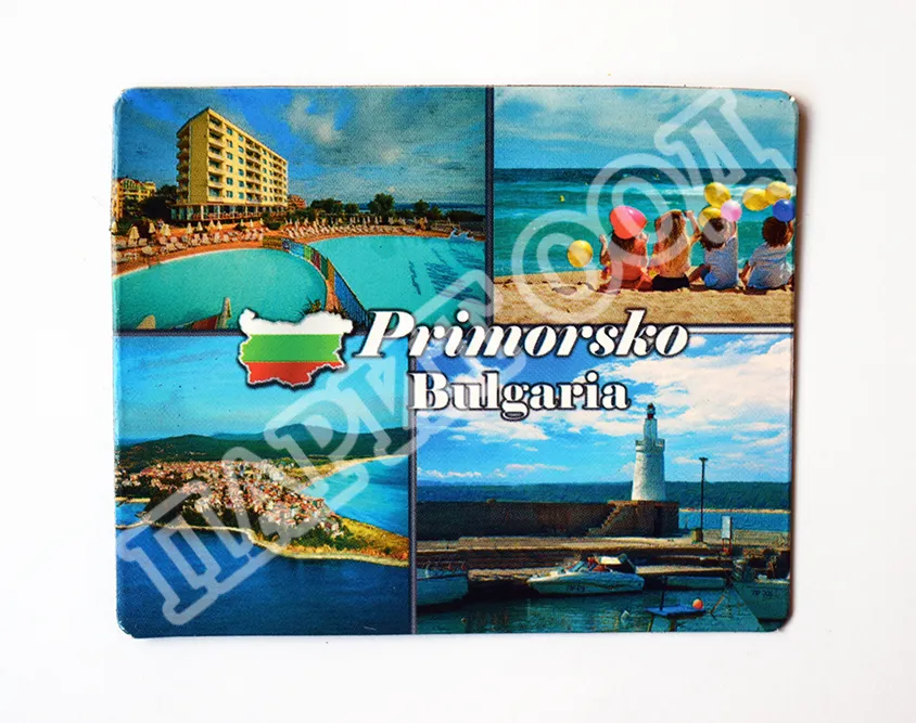 Сувенирен магнит със снимки от Приморско. Предлага се опакован в щендерен целофан.