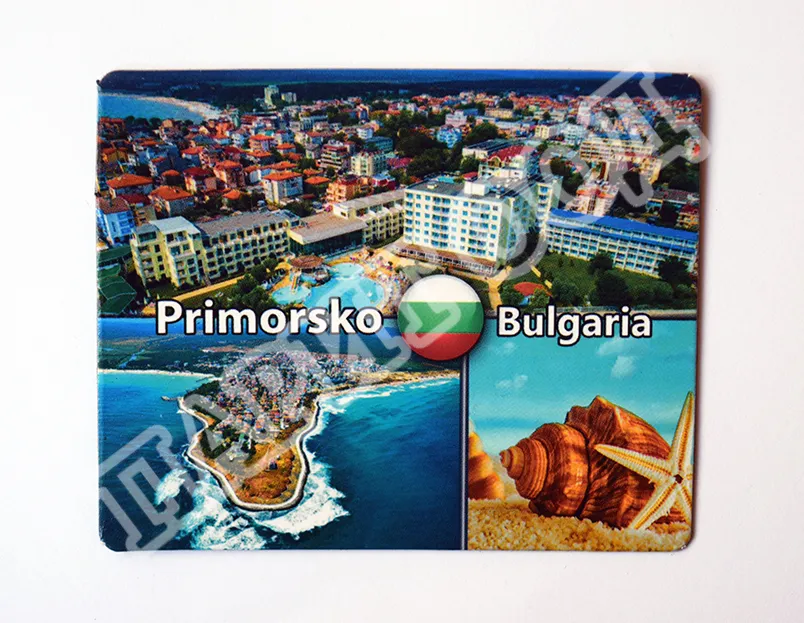 Сувенирен магнит със снимки от Приморско. Предлага се опакован в щендерен целофан.
