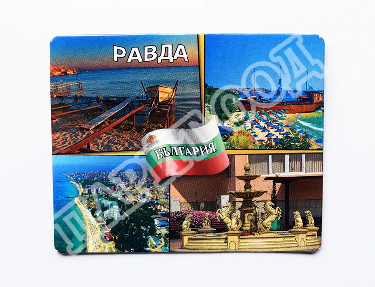 Сувенирен магнит със снимки от Равда. Предлага се опакован в щендерен целофан.