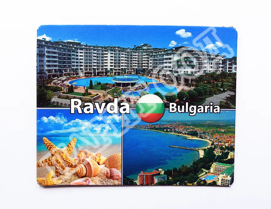 Сувенирен магнит със снимки от Равда. Предлага се опакован в щендерен целофан.