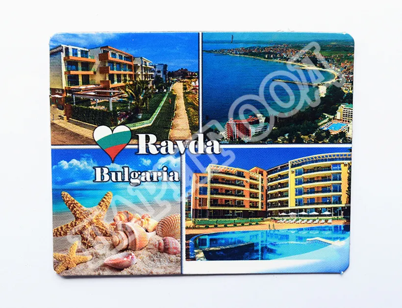 Сувенирен магнит със снимки от Равда. Предлага се опакован в щендерен целофан.