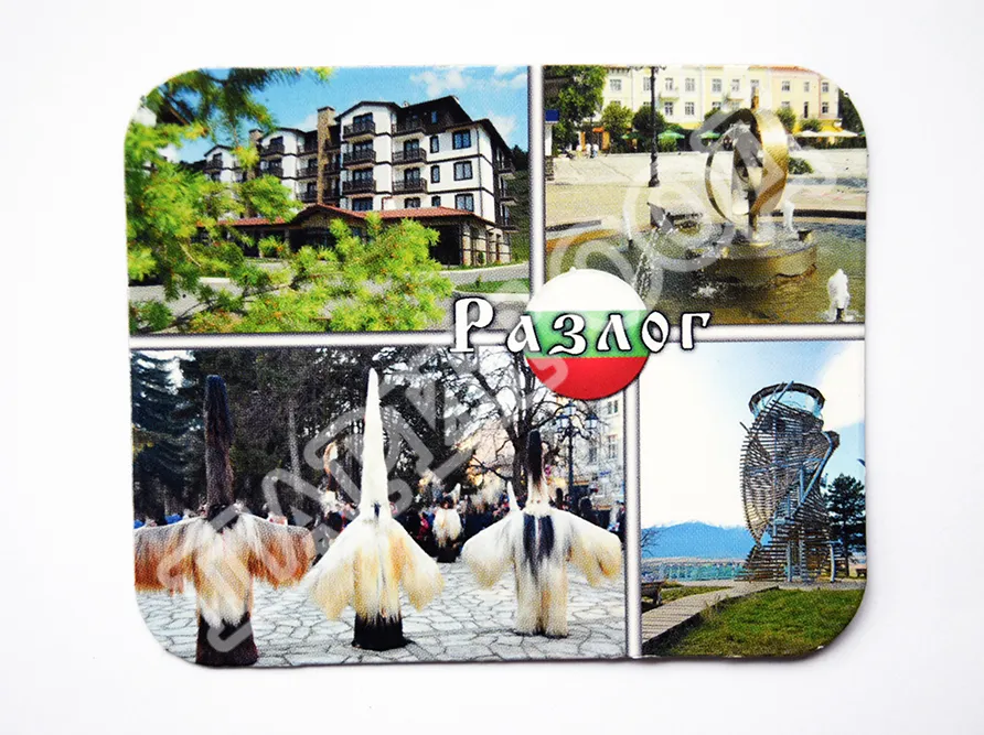 Сувенирен магнит със снимки от Разлог. Предлага се опакован в щендерен целофан.