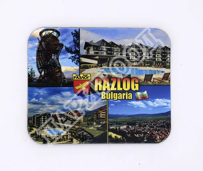 Сувенирен магнит със снимки от Разлог. Предлага се опакован в щендерен целофан.