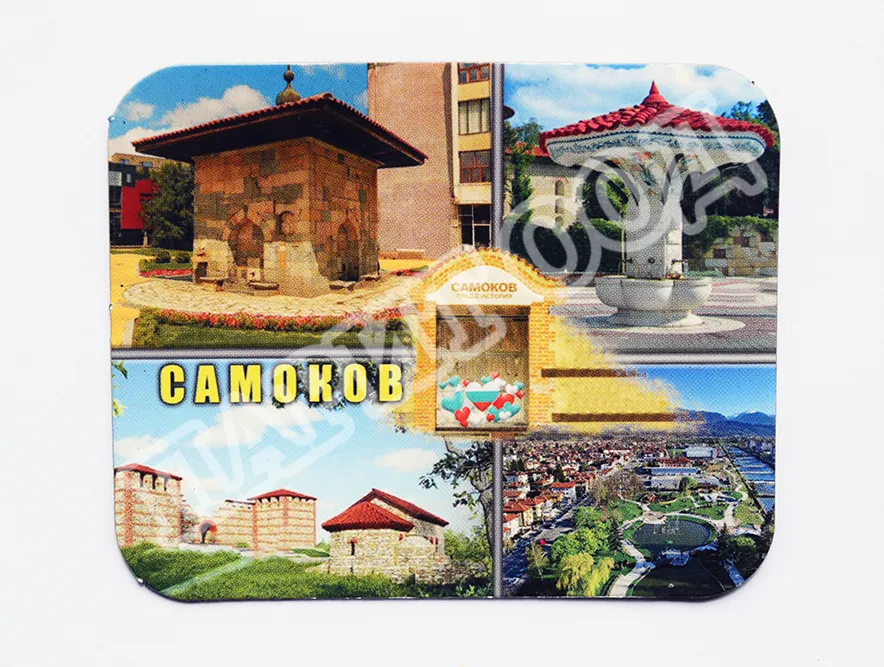 Сувенирен магнит със снимки от Самоков. Предлага се опакован в щендерен целофан.