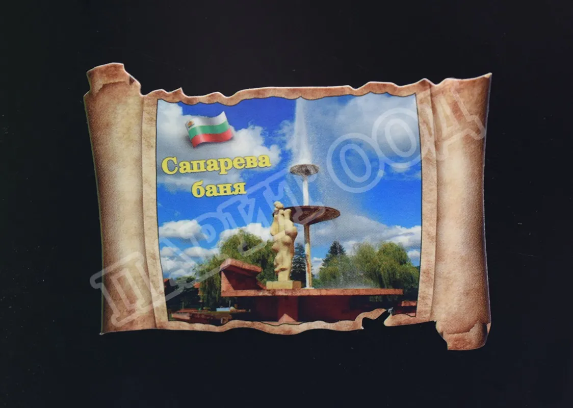 Сувенирен магнит със снимка от Сапарева баня. Предлага се опакован в щендерен целофан.