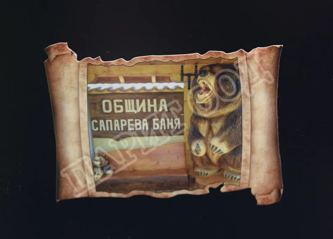 Сувенирен магнит със снимка от Сапарева баня. Предлага се опакован в щендерен целофан.