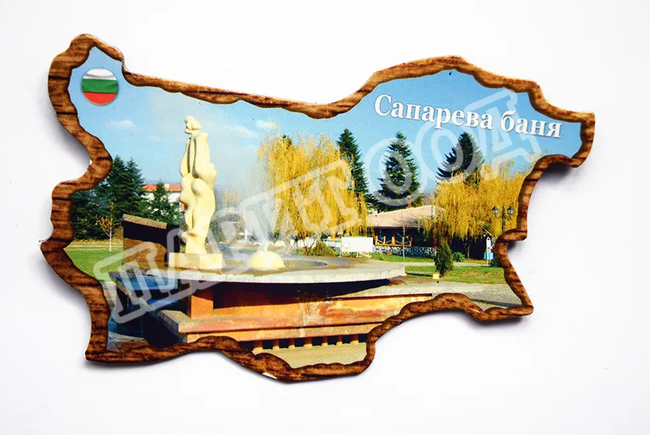 Сувенирен магнит със снимка от Сапарева баня. Предлага се опакован в щендерен целофан.