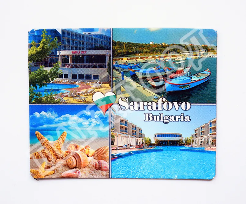 Сувенирен магнит със снимки от Сарафово. Предлага се опакован в щендерен целофан.