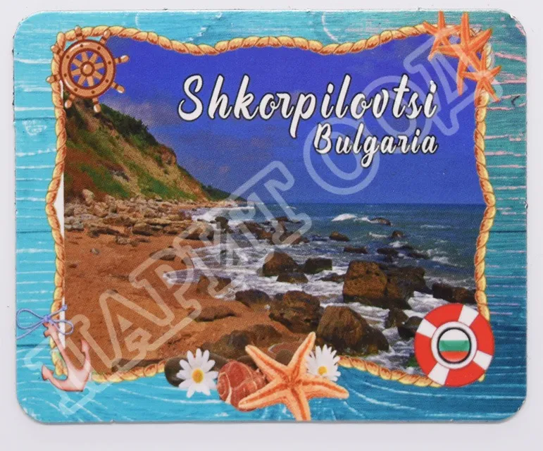 Сувенирен магнит със снимка от Шкорпиловци. Предлага се опакован в щендерен целофан.