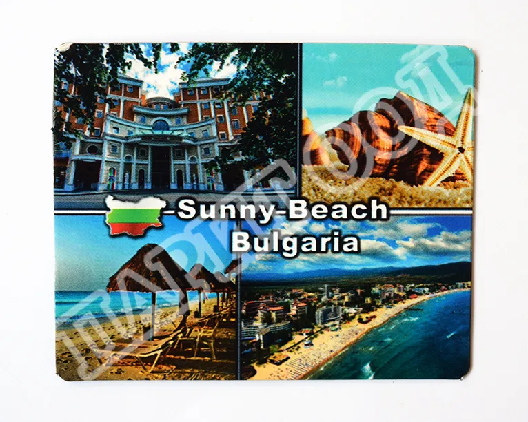 Сувенирен магнит със снимки от Слънчев бряг. Предлага се опакован в щендерен целофан.