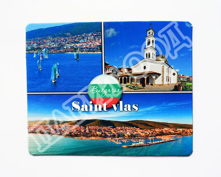 Сувенирен магнит със снимки от Свети Влас. Предлага се опакован в щендерен целофан.