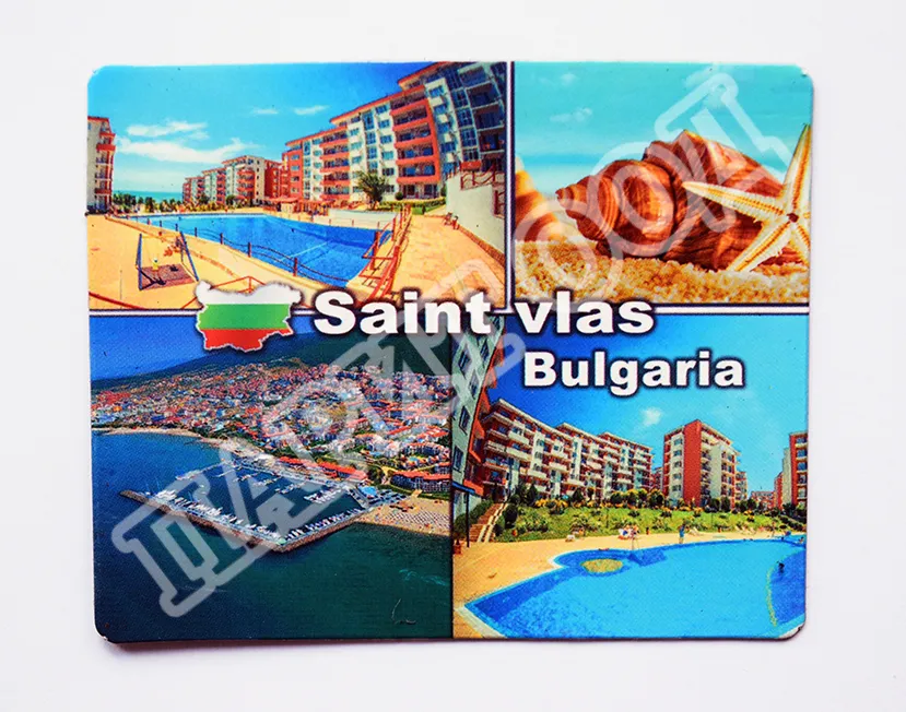 Сувенирен магнит със снимки от Свети Влас. Предлага се опакован в щендерен целофан.
