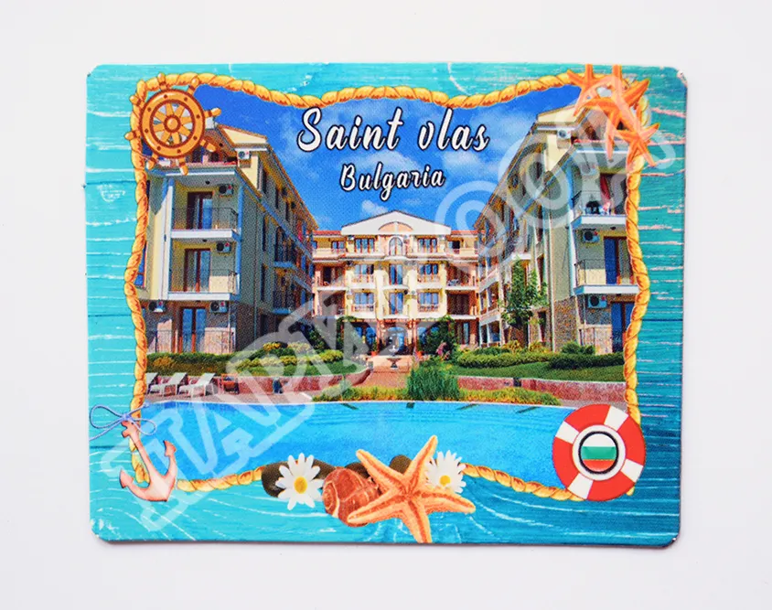 Сувенирен магнит със снимка от Свети Влас. Предлага се опакован в щендерен целофан.