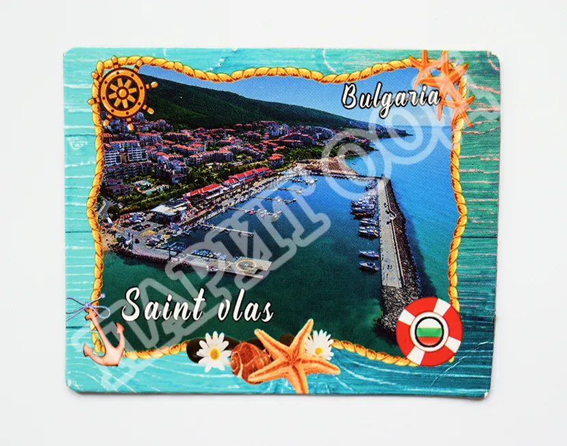 Сувенирен магнит със снимки от Свети Влас. Предлага се опакован в щендерен целофан.