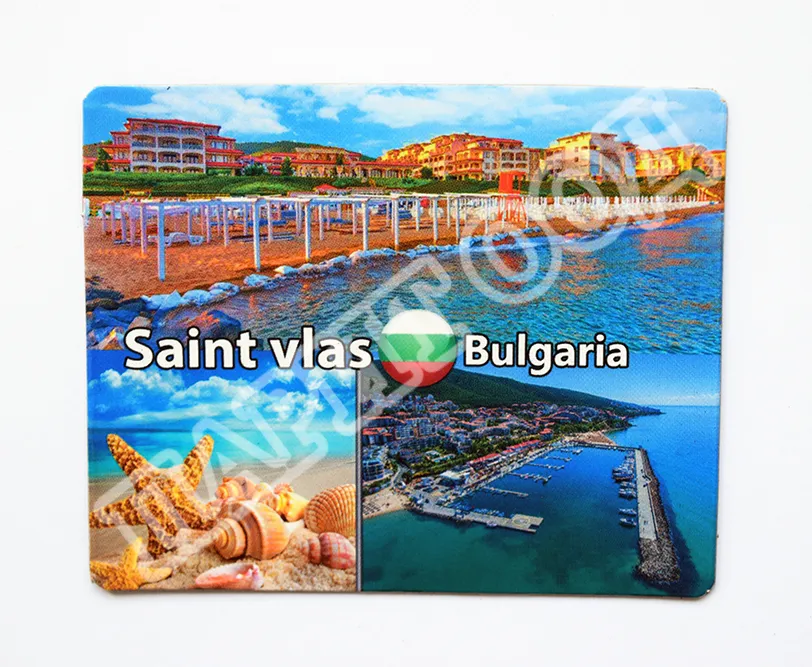 Сувенирен магнит със снимки от Свети Влас. Предлага се опакован в щендерен целофан.