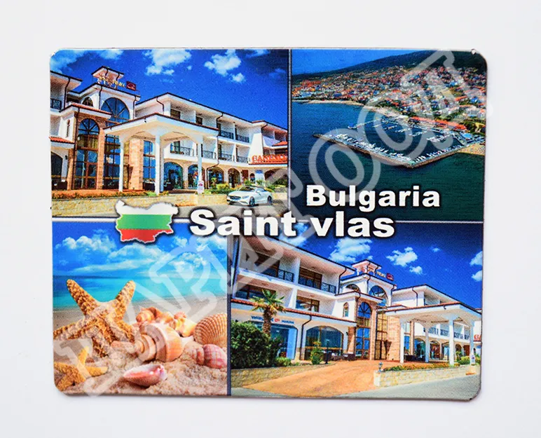Сувенирен магнит със снимки от Свети Влас. Предлага се опакован в щендерен целофан.