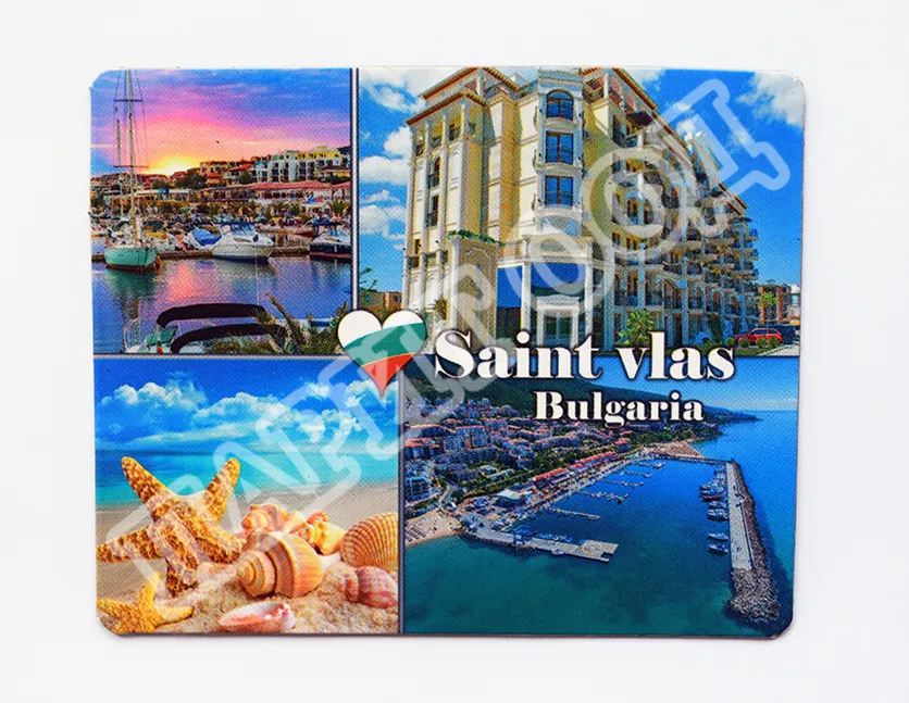 Сувенирен магнит със снимки от Свети Влас. Предлага се опакован в щендерен целофан.