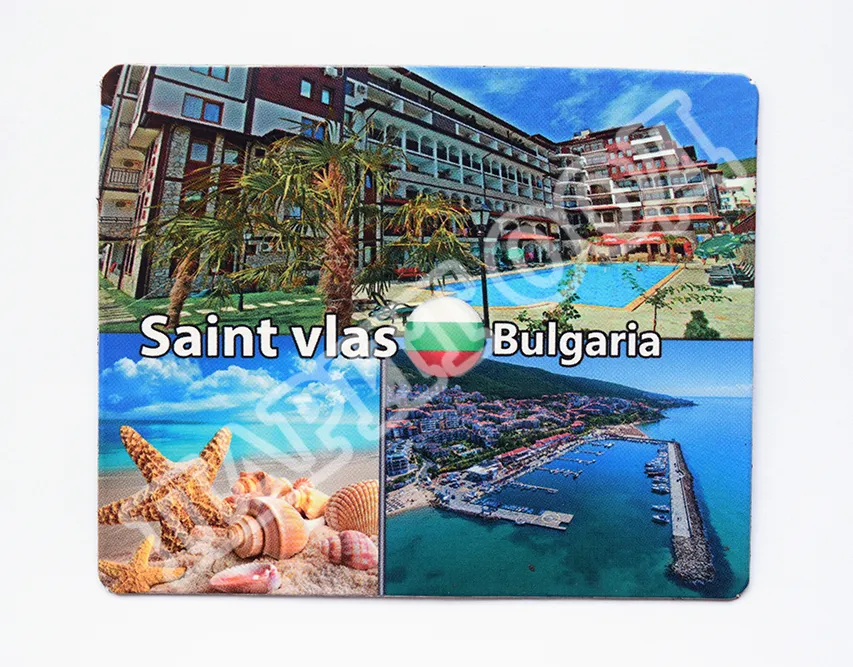 Сувенирен магнит със снимки от Свети Влас. Предлага се опакован в щендерен целофан.