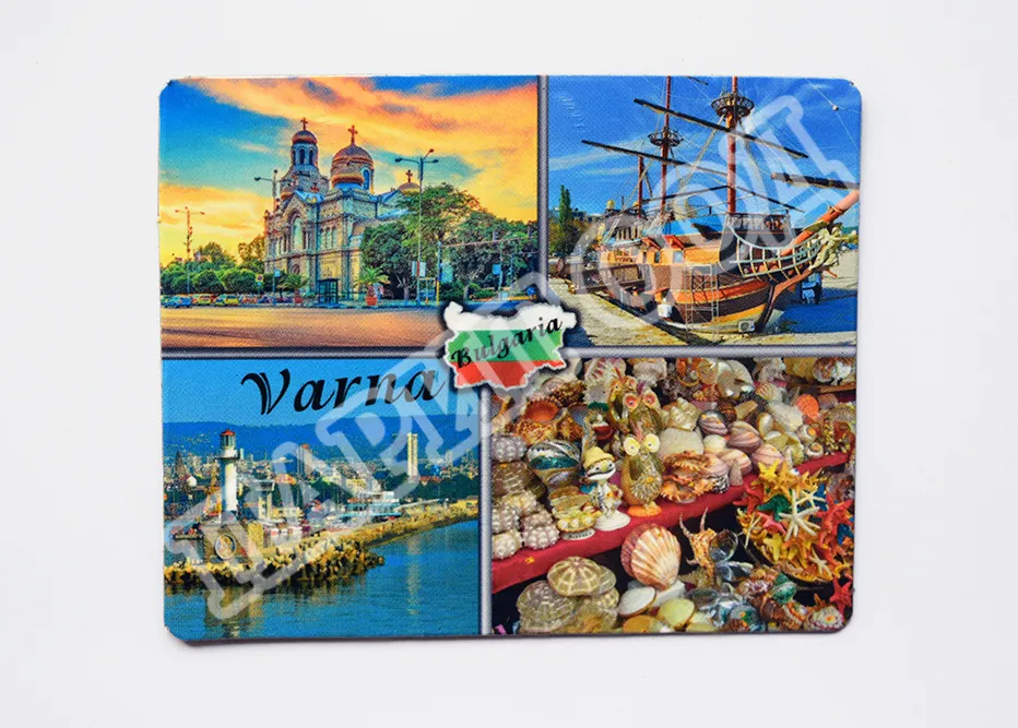 Сувенирен магнит със снимки от Варна и надпис Варна, България. Предлага се опакован в щендерен целофан.