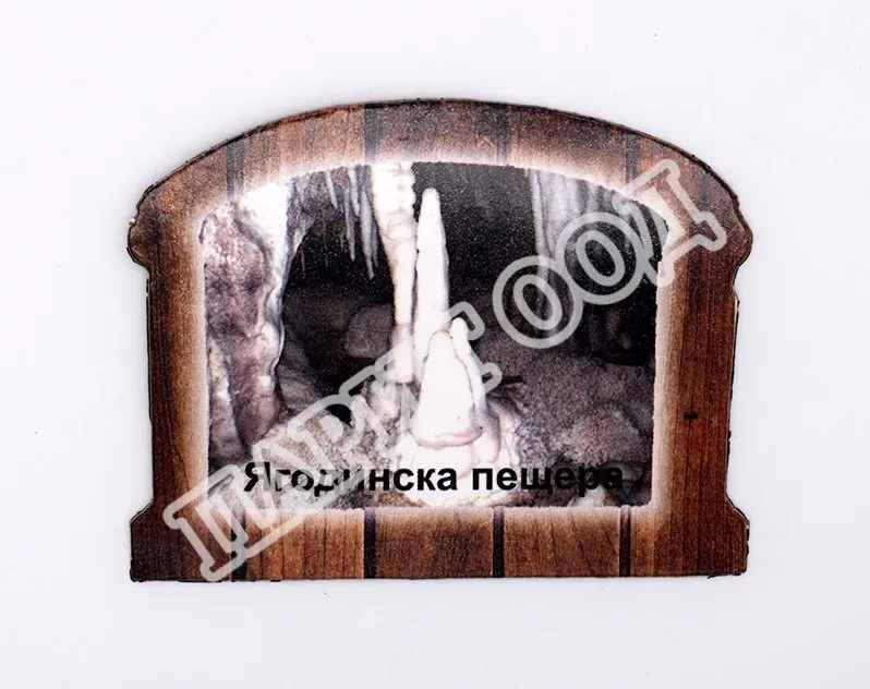 Сувенирен магнит със снимка от Ягодинска пещера, с. Ягодина. Предлага се опакован в щендерен целофан.